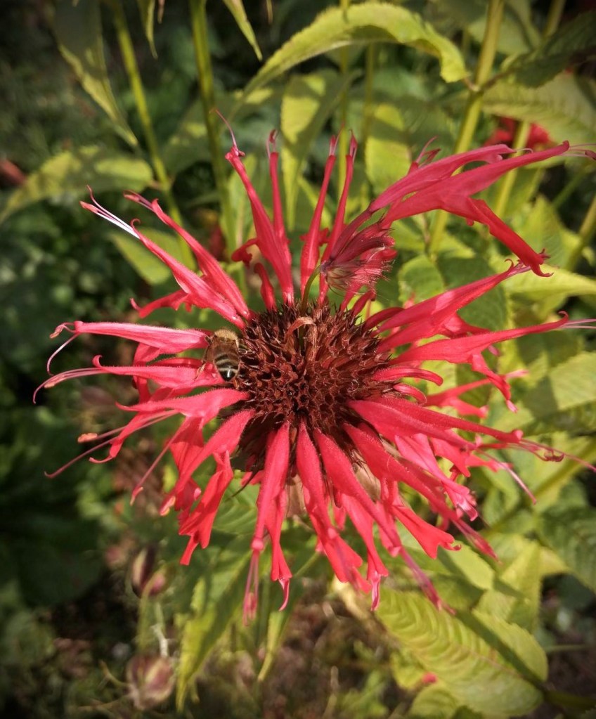Die aus Amerika stammende Indianernessel oder auch Goldmelisse (Monarda didyma) aus der Familie der Lippenblütler ist eine beliebte Duft-, Gewürz- und Heilpflanze. Manche Nachtfalterarten sind mit ihren Rüsseln in der Lage den Nektar aus den langen Blütenkelchen zu trinken.